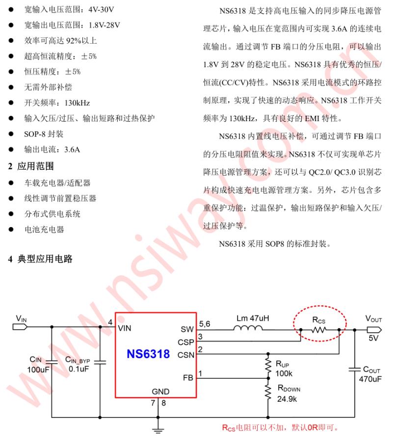 NS6318 4-30V輸入 3.6A輸出同步降壓型穩壓器