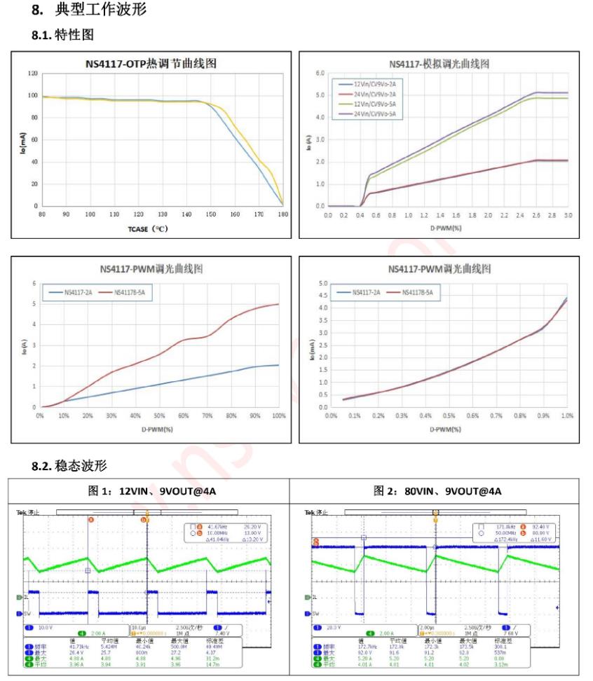 NS4117X系列是一款外圍電路簡單的降壓型平均電流檢測模式的LED恒流控制器,輸入電壓最高支持100V電壓范圍,輸出電流可調,支持一顆或多顆串聯LED應用的非隔離式大功率恒流LED驅動領域。芯片開關頻率可變,最高支持1MHz。采用平均電流檢測模式實現輸出恒流。芯片通過DIM引腳復用的方式可以實現LED開/關、模擬調光和PWM調光功能。芯片內部集成了LDO,過溫調節等功能,減小了外圍電路元件數量并提高了系統的可靠性。NS4117X系列采用了SOT23-6L封裝。