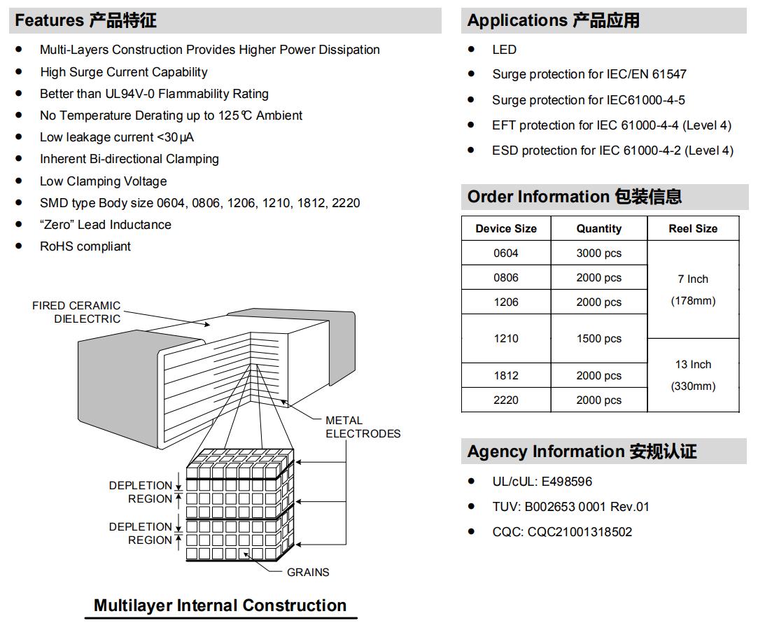 • Multi-Layers Construction Provides Higher Power Dissipation ? High Surge Current Capability ? Better than UL94V-0 Flammability Rating ? No Temperature Derating up to 125oC Ambient ? Low leakage current