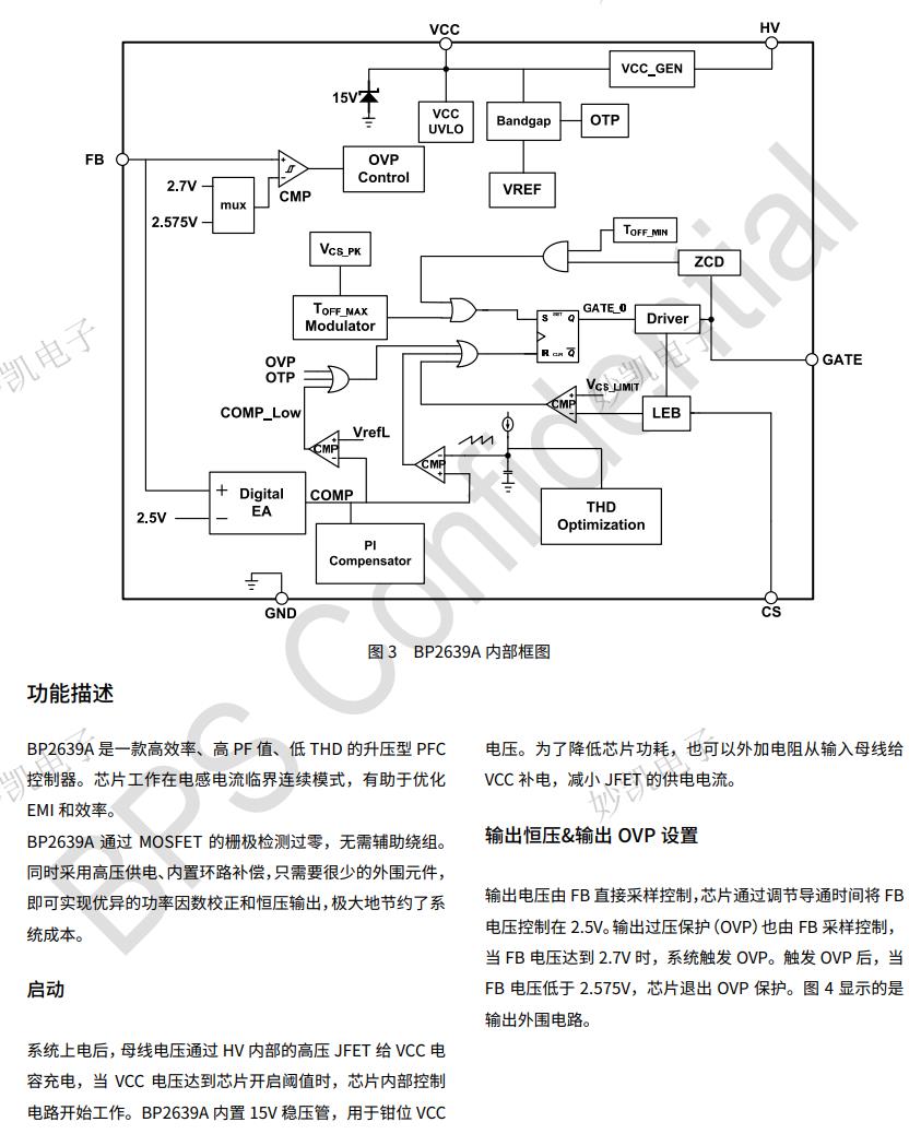 BP2639A是一款高效率、高PF值、低THD的升壓型PFC控制器。芯片工作在電感電流臨界連續模式,有助于優化EMI和效率。