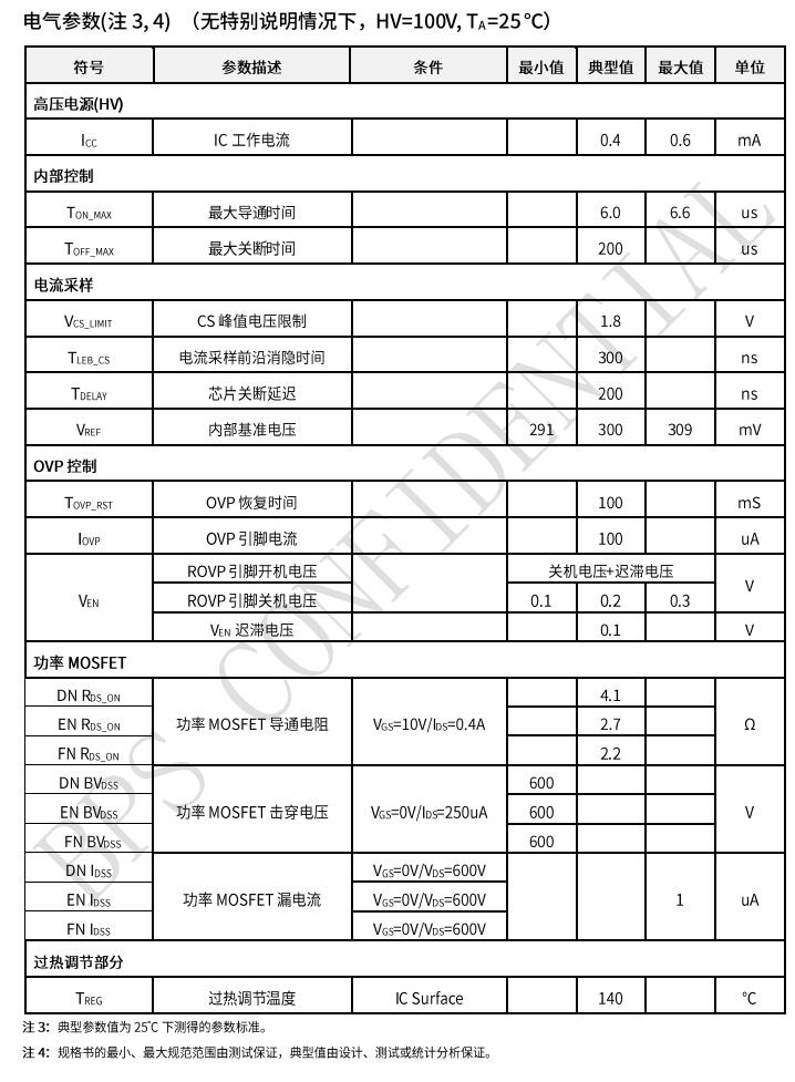 | BP2364DN | ASOP-8 | Y | 6.8Ω | 600V | External | Y | - | - | <220 |