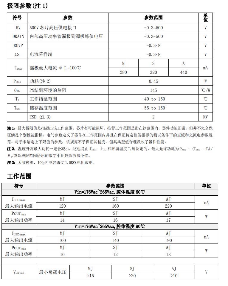 產品型號封裝MOS內阻MOS耐壓過溫 保護開路保護輸出電流@Vout=72V(mA) (Vin=176V-265V)最大輸出功率(W) (Vin=176V-265V)