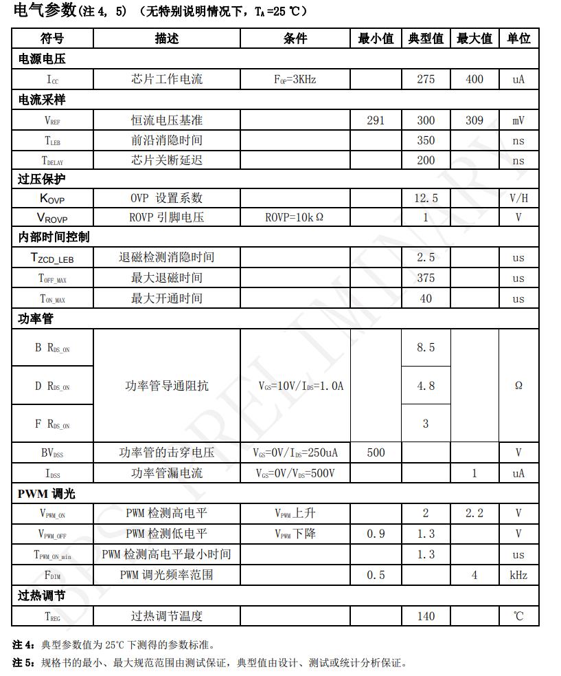 優(yōu)勢(shì) 支持 1%-100%PWM 調(diào)光 全程模擬調(diào)光無頻閃 無需啟動(dòng)電阻和 VCC 電容 內(nèi)部集成 500V 功率管 ±5% LED 輸出電流精度 LED 開路保護(hù) LED 短路保護(hù) 過熱調(diào)節(jié)功能 采用 SOP-8 封裝