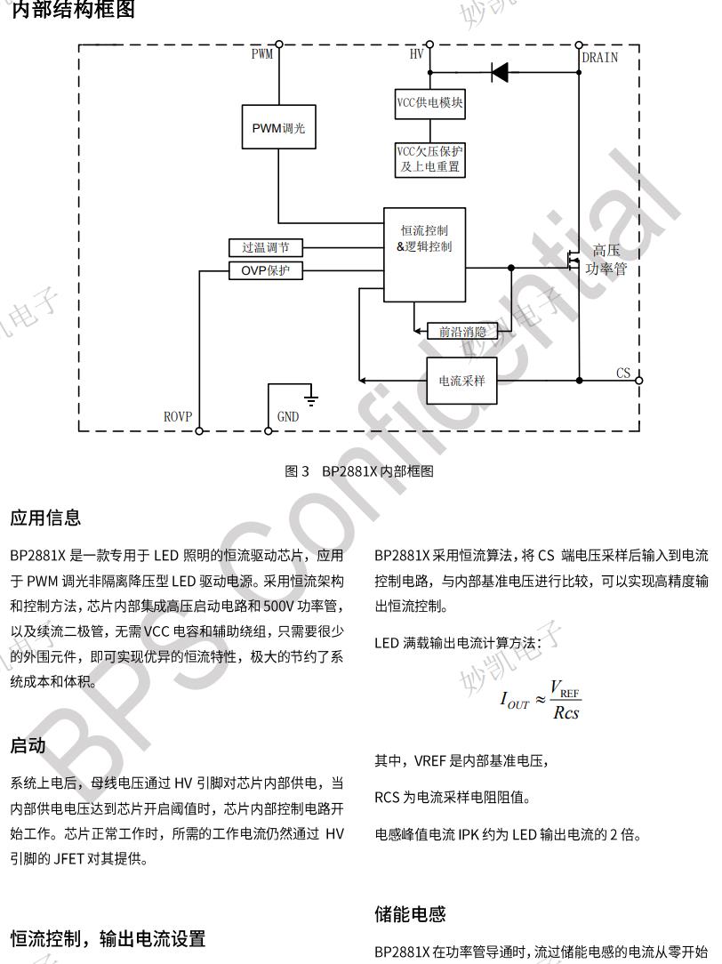BP2881D能夠達到優異的調光線性度和輸出電流一致性,適用于85Vac~265Vac全范圍輸入電壓的非隔離降壓型LED恒流電源。