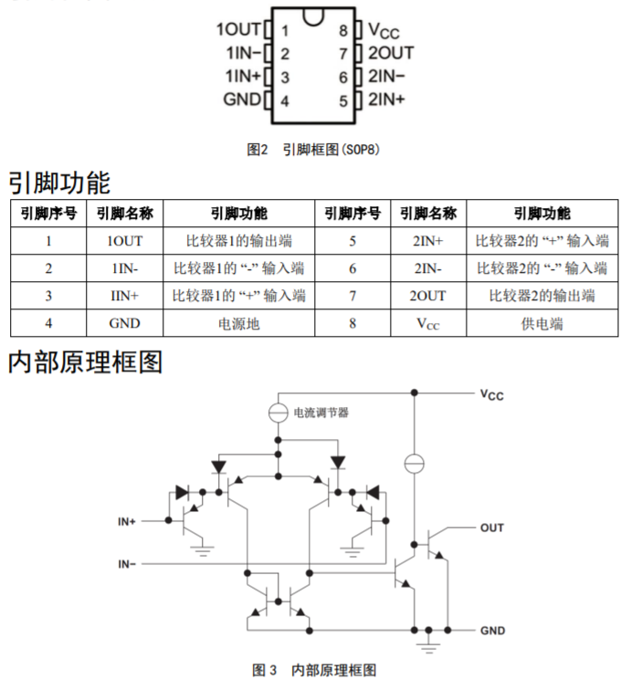產(chǎn)品特征 ? 單電源或雙電源工作 ? 寬電源電壓范圍: 最大額定值:2V至36V 測(cè)試電壓為30V ? 低供電電流:0.5mA(典型值) ? 低輸入偏置電流:25nA(典型值) ? 低輸入失調(diào)電流:3nA(典型值) ? 低輸入失調(diào)電壓:2mV(典型值) ? 共模輸入電壓范圍包括接地 ? 差分輸入電壓范圍等于最大額定電源電 壓:±36V ? 低輸出飽和電壓 ? 輸出與TTL、MOS和CMOS兼容 ? 封裝形式:SOP8