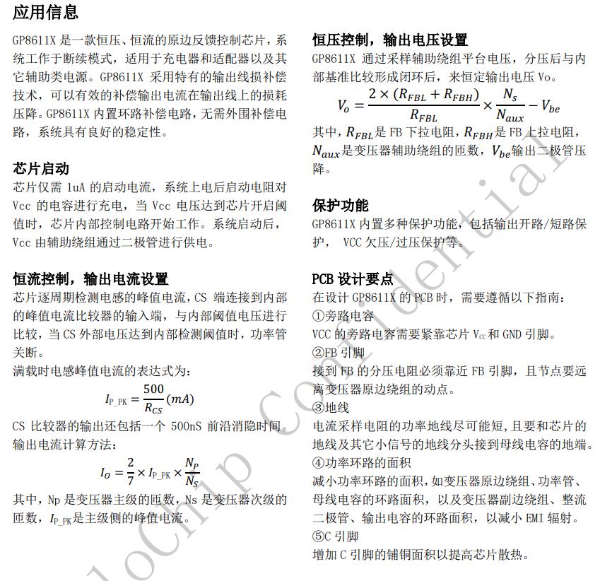 GP8611X是一款恒壓、恒流的原邊反饋QR導(dǎo)通控制芯片,適用于充電器和適配器。GP8611X采用特有的輸出線損補(bǔ)償技術(shù),可以有效的補(bǔ)償輸出電流在輸出線上的損耗壓降。