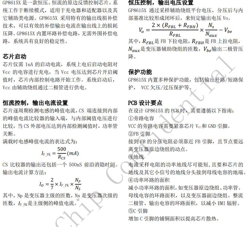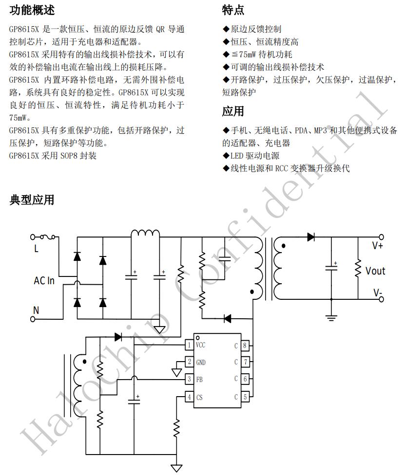 GP8615X具有多重保護(hù)功能,包括開路保護(hù),過壓保護(hù),短路保護(hù)等功能。