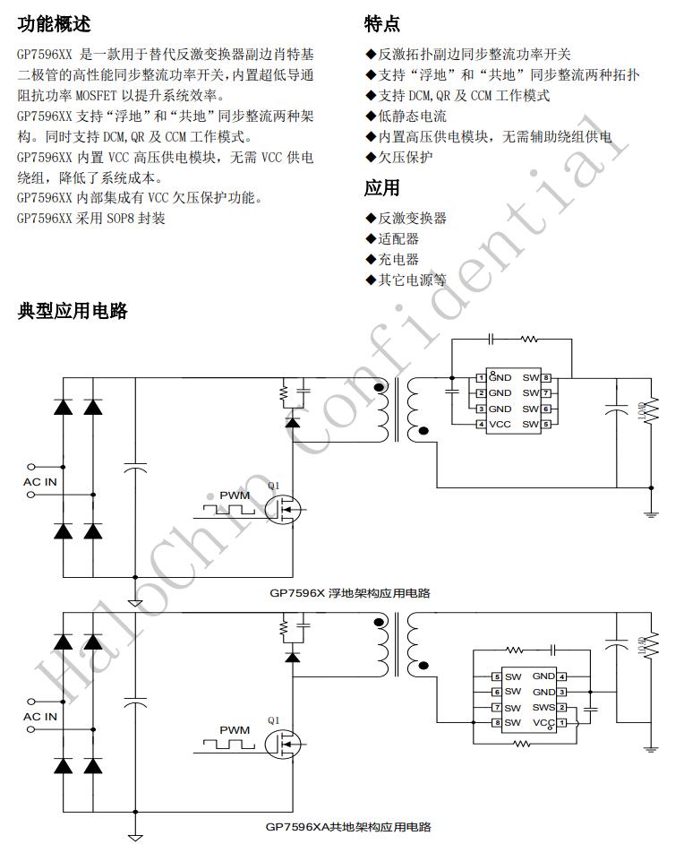 GP7596XX是一款用于替代反激變換器副邊肖特基二極管的高性能同步整流功率開關,內置超低導通阻抗功率MOSFET以提升系統效率。
