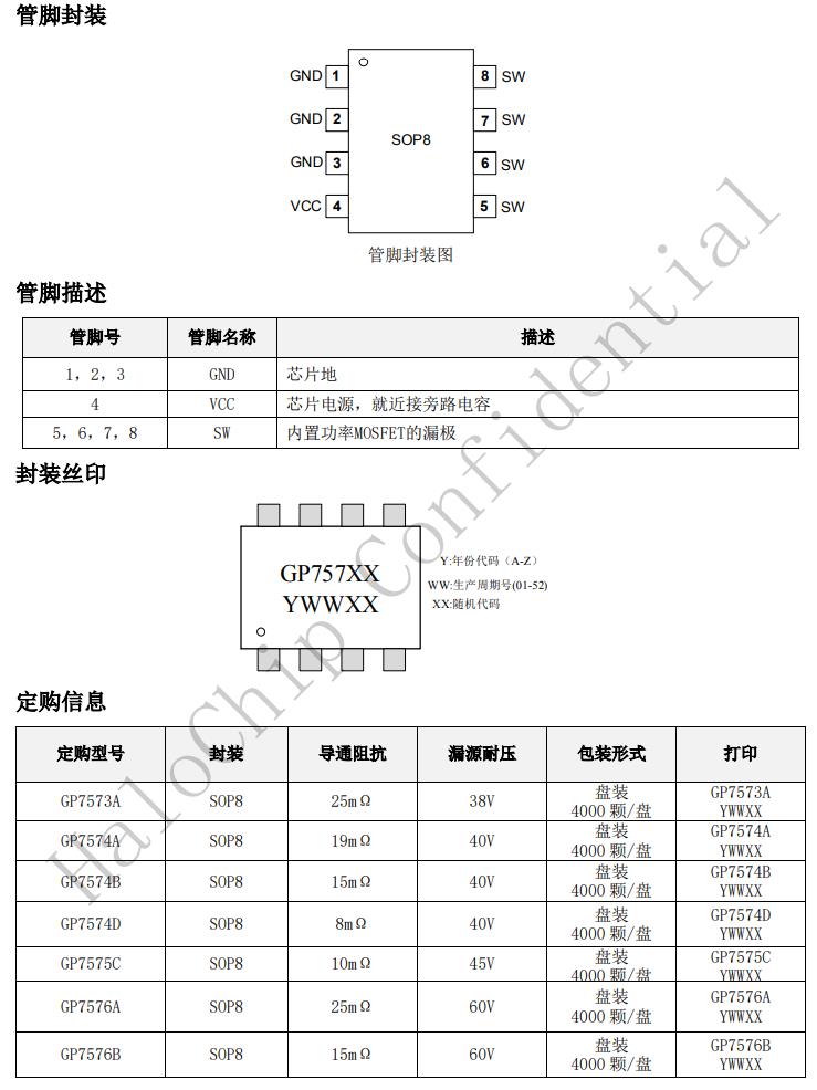GP757XX內(nèi)部集成有VCC欠壓保護(hù)功能。GP757XX采用SOP8封裝